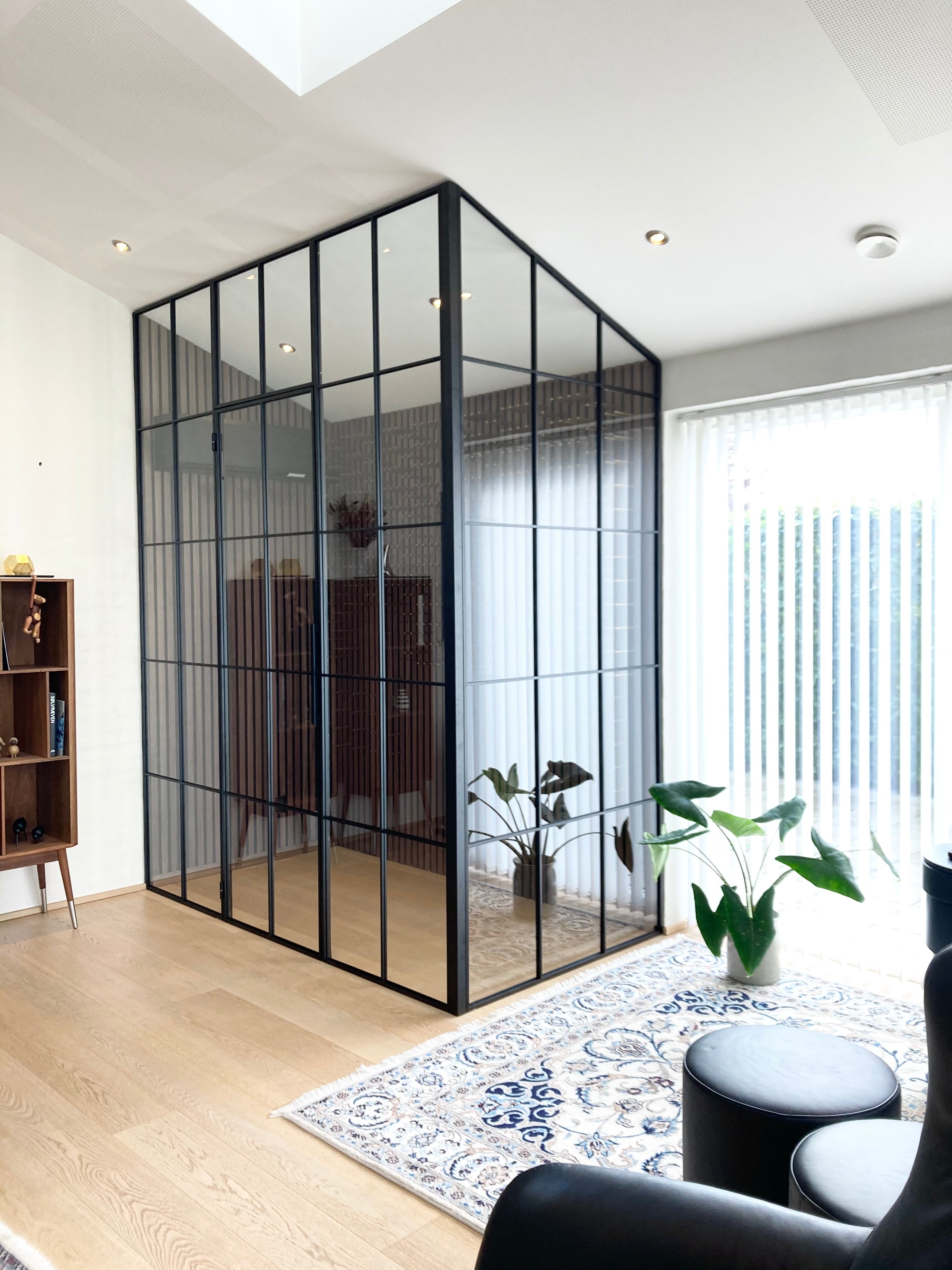 Vi opbygger og svejser din New Yorker væg med en slank og elegant hovedramme på 15 mm, samt smalle sprosser på 10 mm. Alt bliver håndlavet efter dine specifikke mål og ønsker på vores eget værksted i Ryomgård.